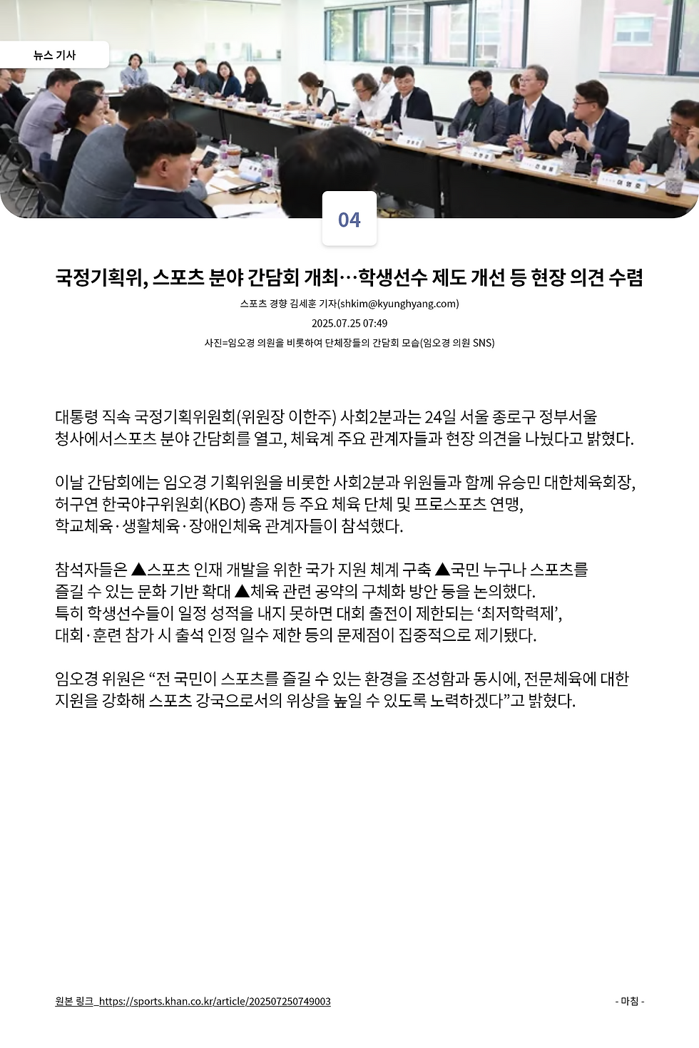 체육시민연대 주간 브리핑 - 2025년 제26호